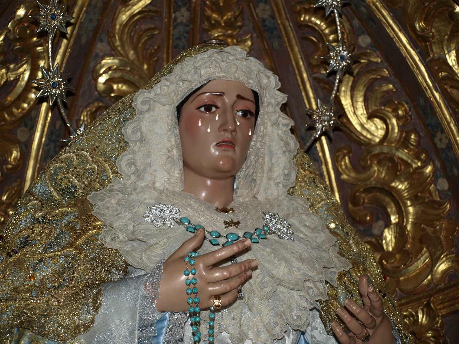 Nuestra Imagen Titular, María Santísima de los Dolores, ya luce esplendorosa en su capilla de la Iglesia de la Asunción, de la cual, el Camarero-vestidor, D. José Romero Ruíz, y dos jóvenes que se forman con éste, como son D. José Alberto Amador Osuna y Dña. María Dolores Jiménez Jordán, han hecho una gran obra de arte una vez más vistiéndola con unos tonos azul cielo, acordes al tiempo eclesiástico que celebramos. De igual forma, nuestro Titular, San Pedro Apóstol, ha sido ataviado para la ocasión con túnica de color negro y capa.
